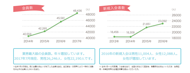※2017年7月1日現在。既に会費の支払いが終了した会員を含む。自己都合・交際等により一時的に活動を休止中の会員13,290名を含む。