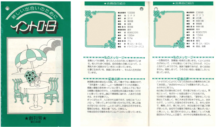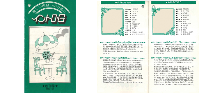 会員の誌上自己紹介が中心。男性版・女性版を発刊。