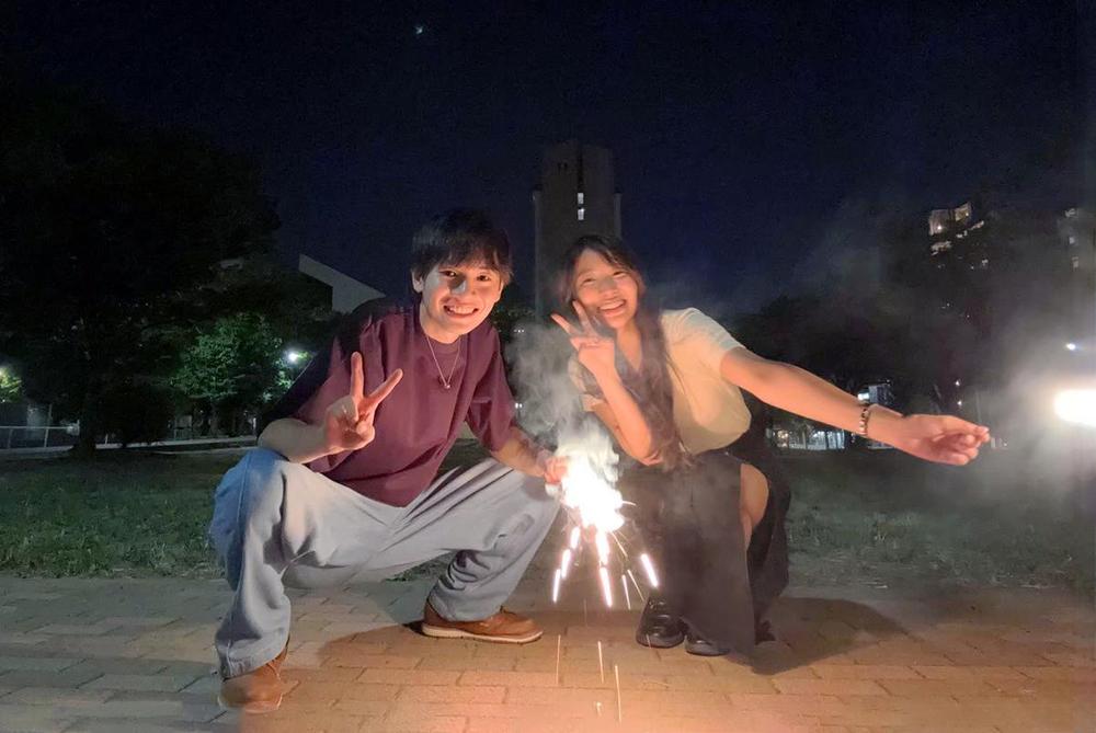 思い出のデートについて、2025年8月に手持ち花火をやった時のことを「青春感があって良かった」と話すふたり。取材中も、同じ温度感のゆったりした空気が流れ、一緒に青春時代を過ごしてきた付き合いの長いカップルのような雰囲気を感じさせるふたりは、これからも同じペースで隣を歩いて行く。
