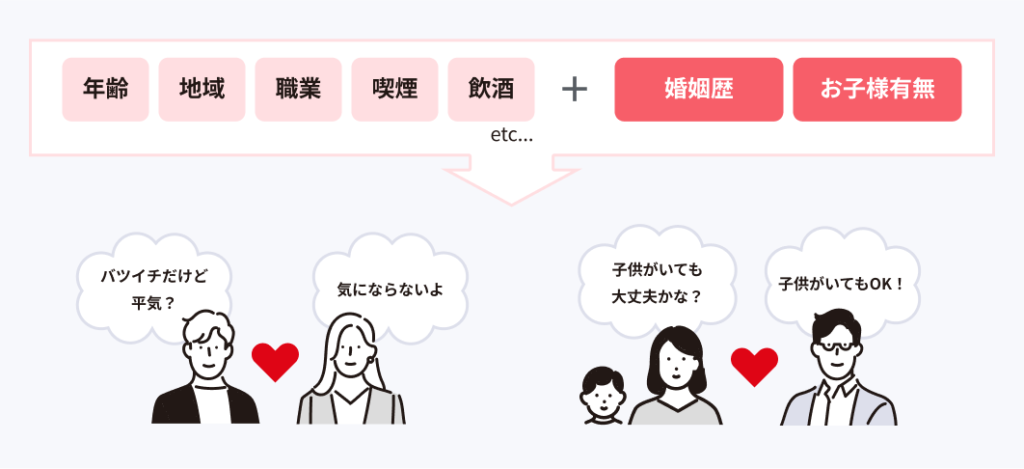 • 年齢や年収、趣味などで絞り込み検索も可能です。
