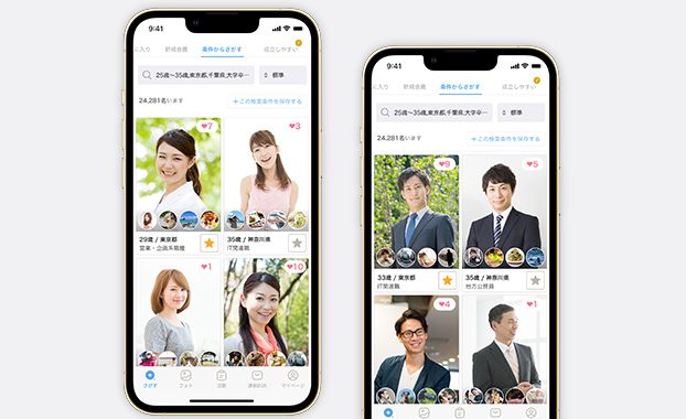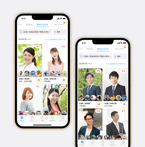専用のスマホアプリで、IBJ会員の中からマッチングしたいお相手を検索してお申込みができます。